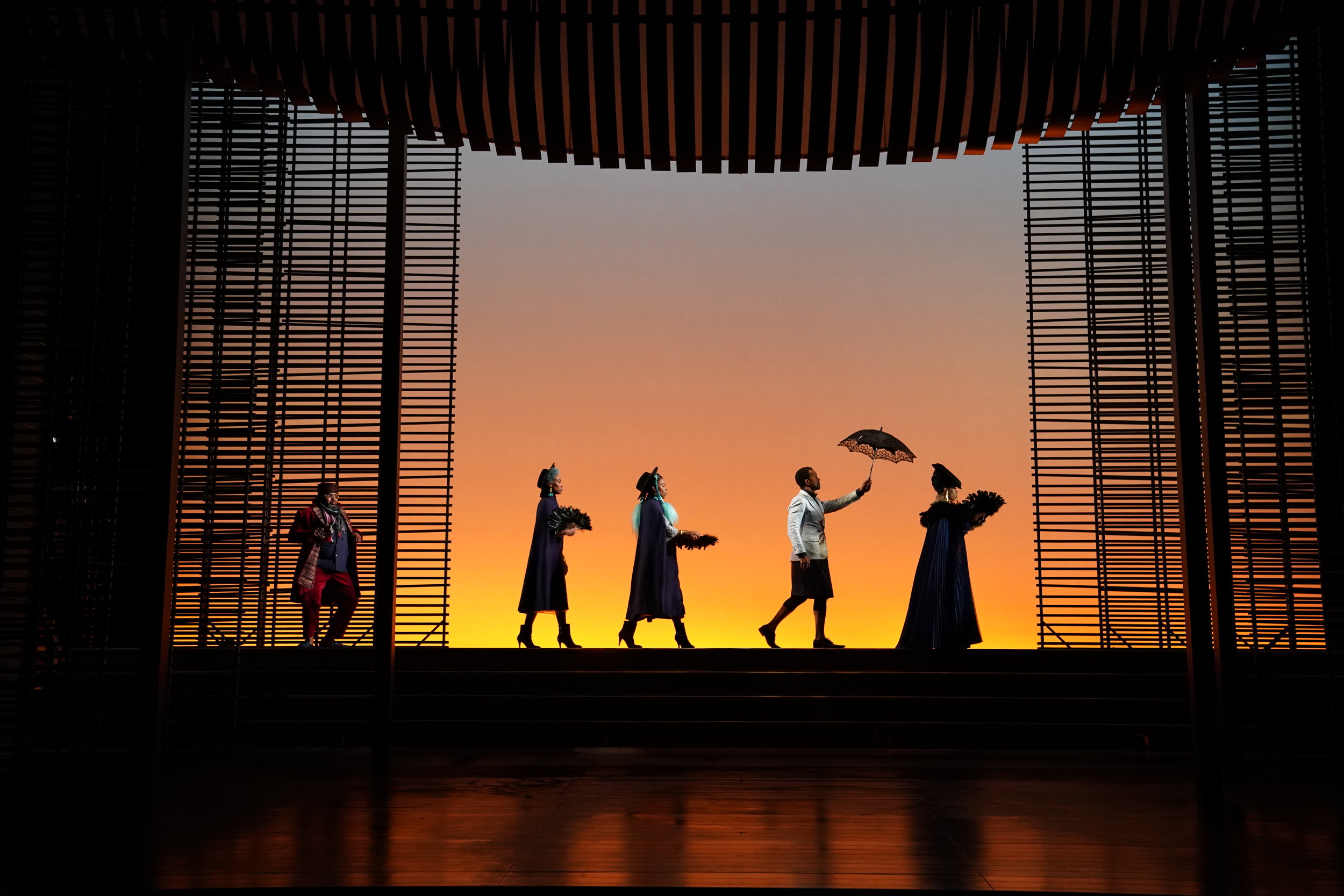 ”Riw Rakkulchon's set design is persuasively authentic, and his rainstorm, outside the windows of the tea shop”